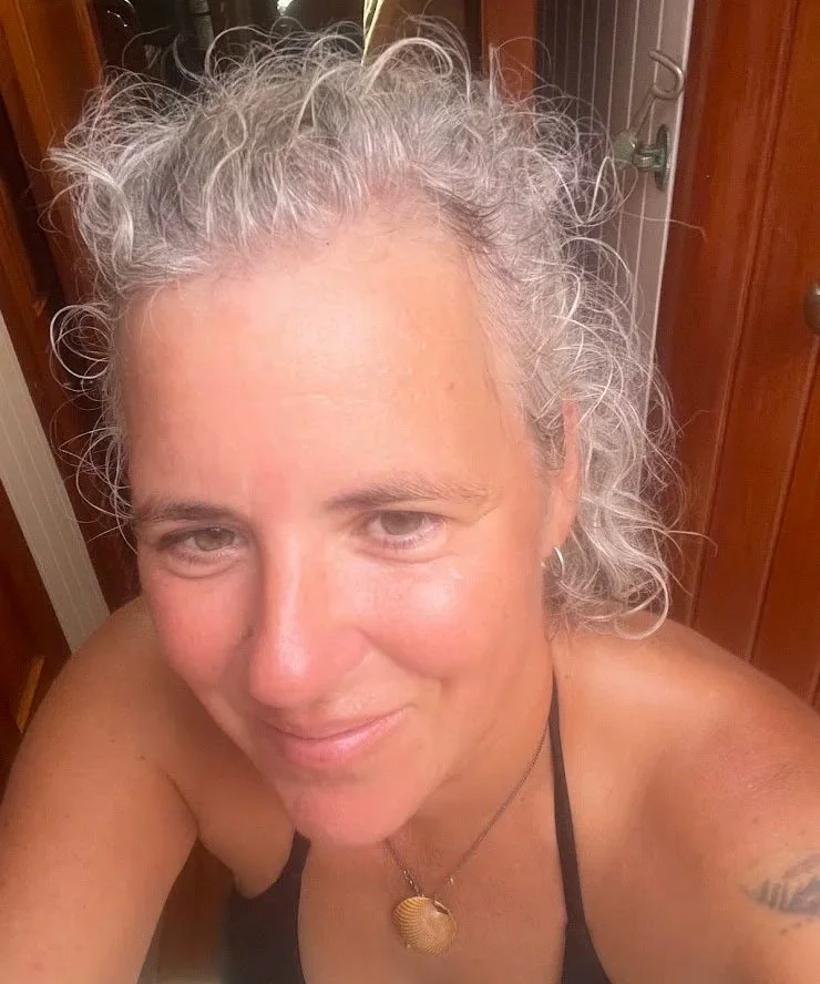 I tried to take a photo of how sweaty my face is - didn’t quite capture it. You can see a sweat tear but I also have drips on my chin, and my whole face is covered in beads. The sweating starts at about 10am. From then on, if I make breakfast or decide to sweep the cockpit I have sweat dripping down the backs of my legs. Christian will be saying to me, ‘mom wipe off your sweat moustache.’ The breeze usually picks up around noon which really does help, as long as you are in a position to feel it.